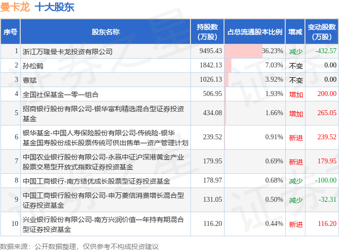 根据曼卡龙2025年三季报公布的十大股东详情如下: