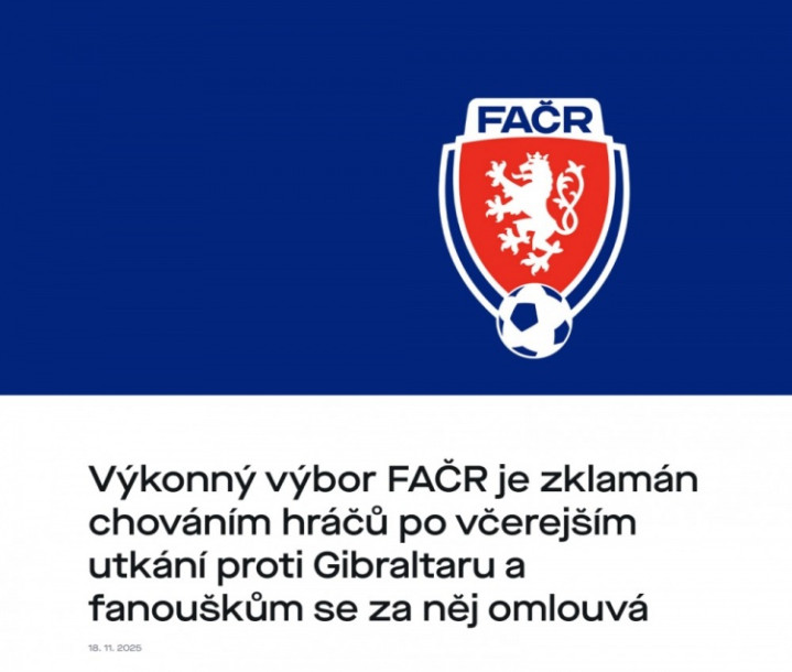 直播吧11月19日讯捷克足协执行委员会对球员在对阵直布罗陀比赛后的表现感到失望,并向球迷道歉。